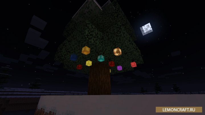 Мод на праздничную гирлянду Winter Decorations новогодняя модификация добавляющая в игру разноцветную гирлянду, которую вы можете повесить, как на деревья, так и на различные постройки. Данная гирлянда создается из обычных ванильных материалов. Для того, что бы кубики на гирлянде начали светиться, вам понадобиться специальный блок, который запускается редстоун сигналом. После включения данного блока, все гирлянды в радиусе 16х16х16 блоков начнут светиться.